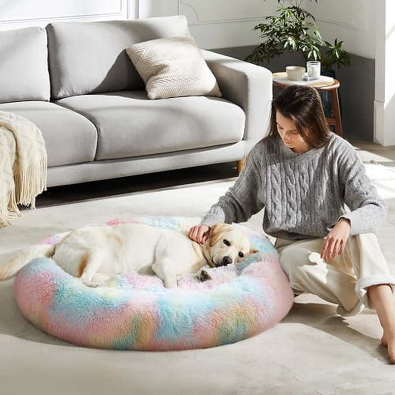 Cama Antiestrés Peluda Para Perros Y Gatos 70cm L Originales Arcoíris Arcoíris